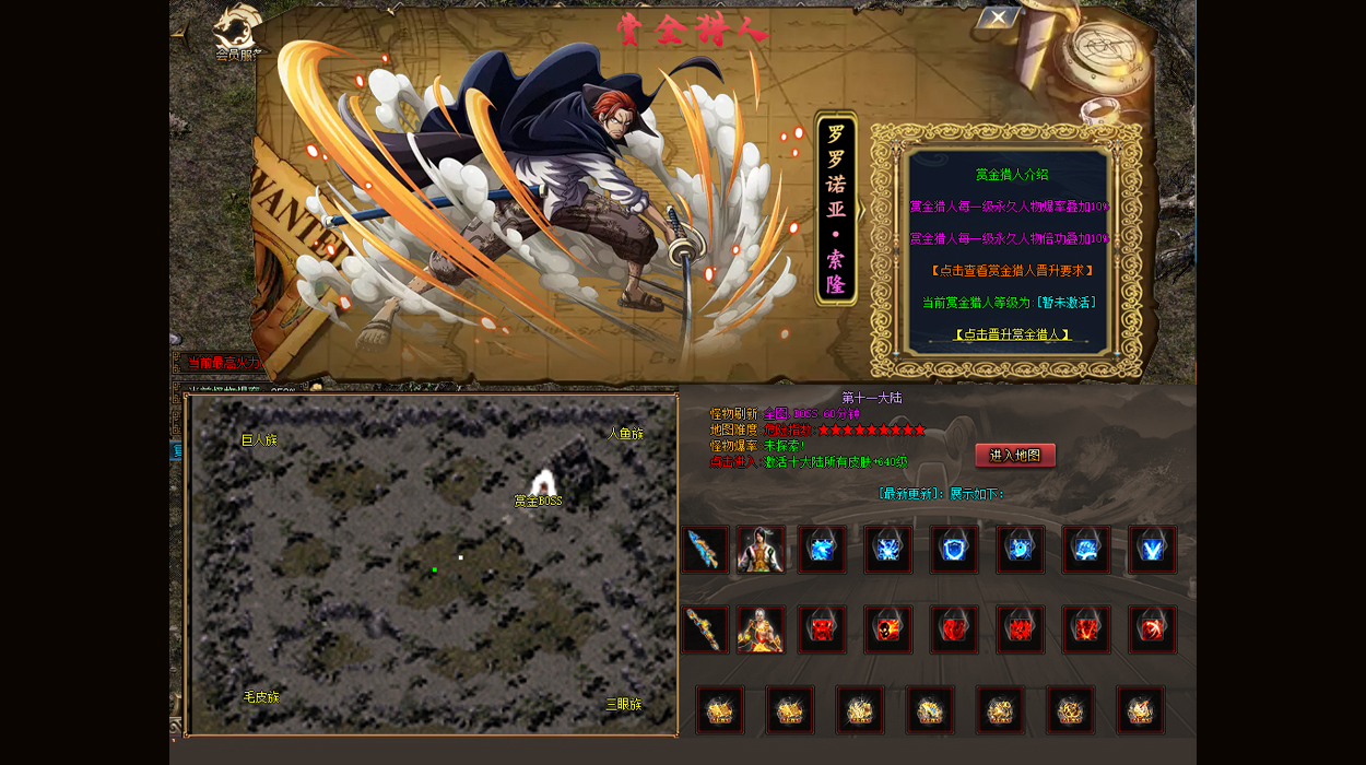 - 【游戏介绍】:|《新海贼吃鸡》本服BOOS种类多,增加了多种BOOS,缩短BOSS刷新时间,都有几率爆出终极。增加打怪乐趣
